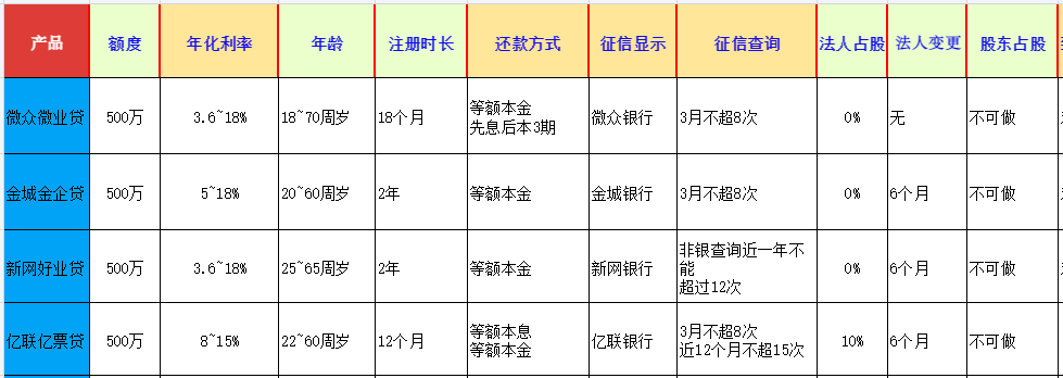 现在企业税票贷产品是比较多的,但是额度在500万的产品并不是很多,其中微业贷、金企贷、好业贷、亿票贷都是额度500万的,今天卡农社区来说说这4款产品的情况,咱们来对比下吧。