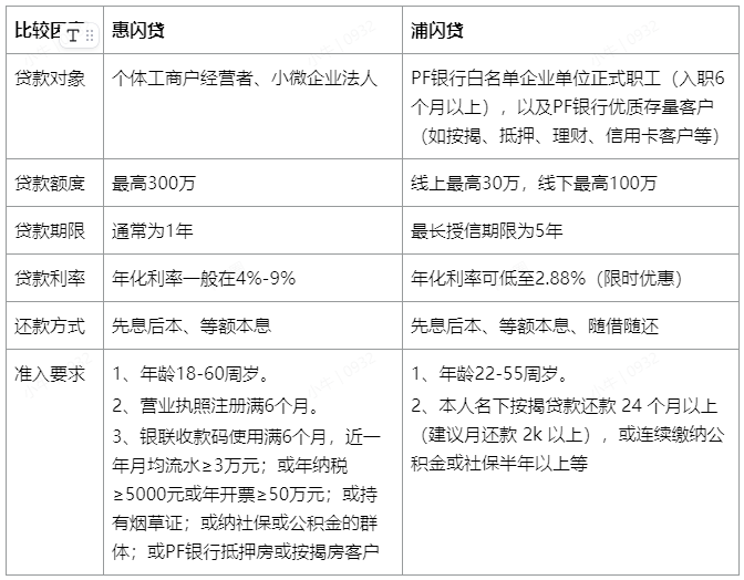 一、惠闪贷和浦闪贷有什么区别?