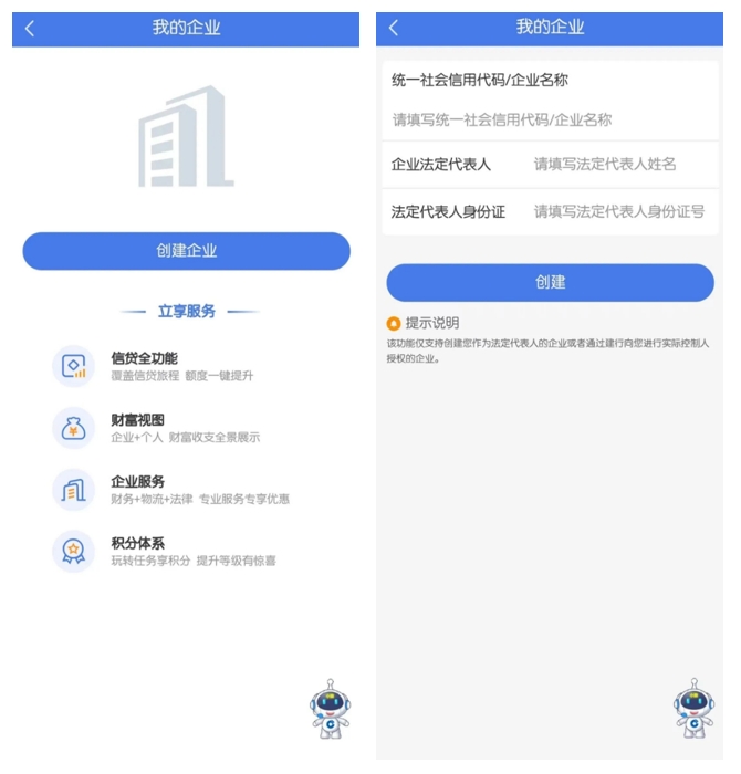 注:支持法人或者线下授权并接受授权的非法定代表人创建企业。
