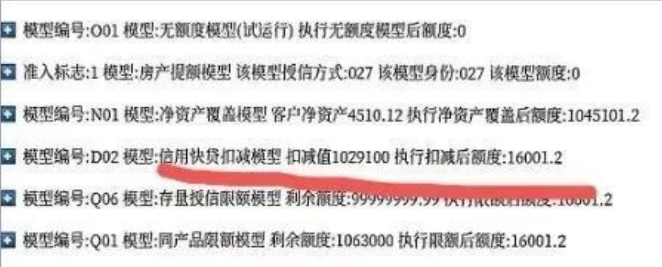 2、AUM模型X01——申请信用快贷,这个模型是资产流水类,曾经有客户建行卡年流水上千万,此模型直接满批300万