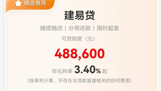 房易贷是建行银行面向在建行办理房贷的客群推出的一款个人信贷产品,最高100万额度,年化利率3.4%起,支持最长1年期先息后本或最长5年期等额本息还款,随借随还无违约金。下面让卡农社区为您具体介绍建行房易贷的申请条件。